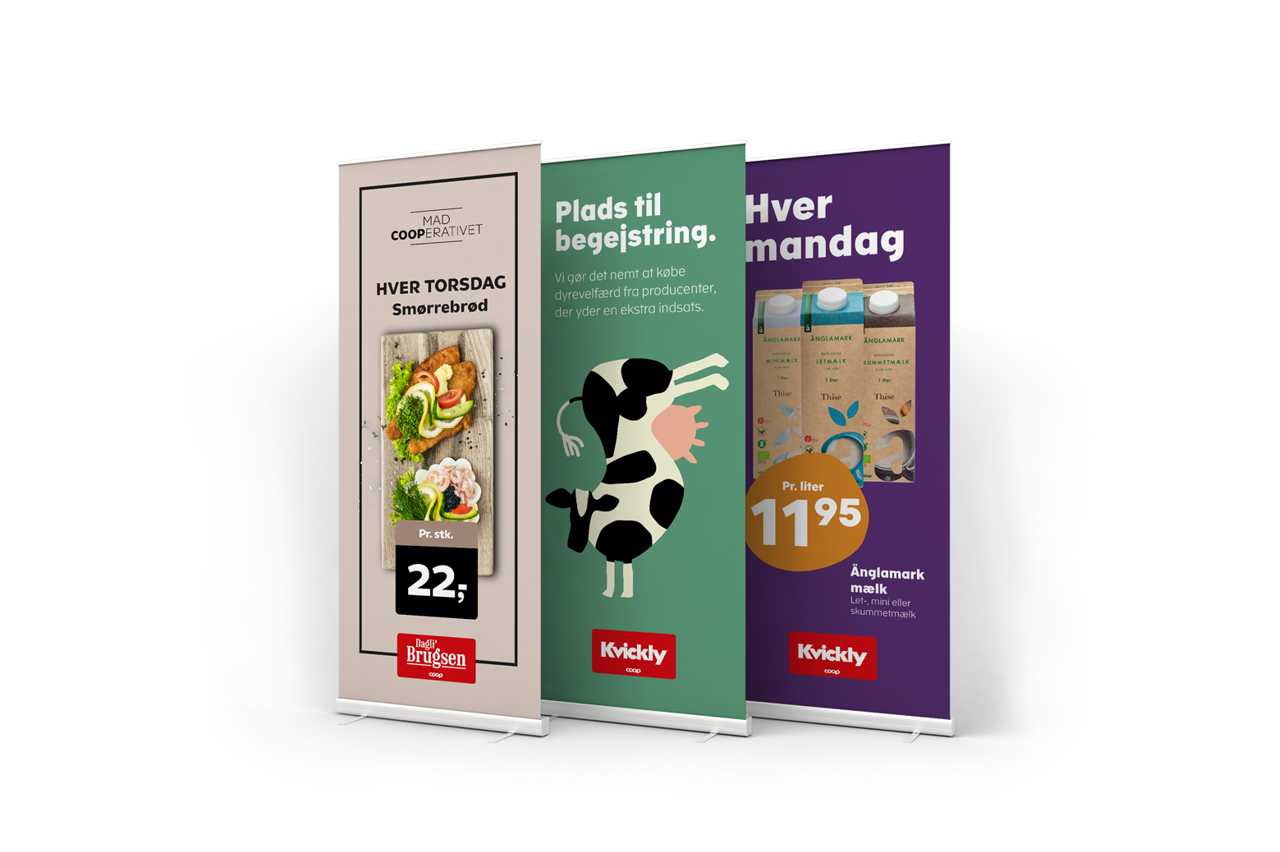 15% rabat på alt frugt & grønt eller måske torsdagssmørrebrød til en 20’er. Om det er en SuperBrugsen i storbyen, en Dagli’Brugsen på landet eller en stor Kvickly forretning, så har jeg muligvis været inde over. Jeg har lavet opsætning på alt fra facadebannere, roll-ups, plakater til klæb og andet instore materiale til Coops dagligvarebutikker over hele Danmark.